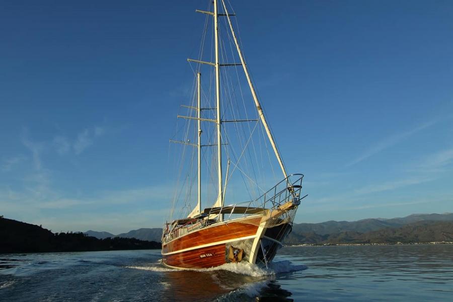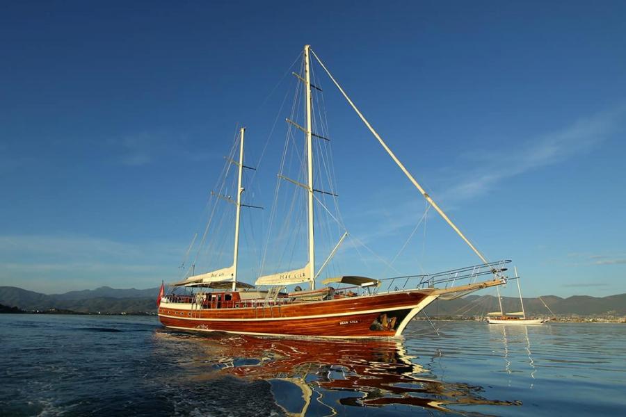 Sail in style aboard Dear Lila, a 33 meter classic ketch gulet offering elegance and comfort for an exclusive turkey private yacht charter experience.