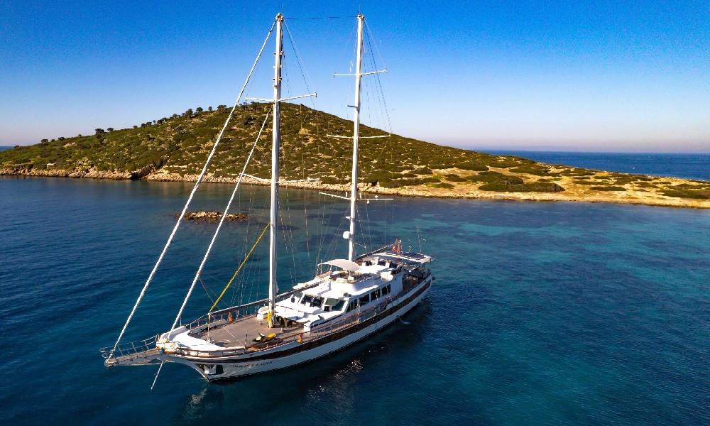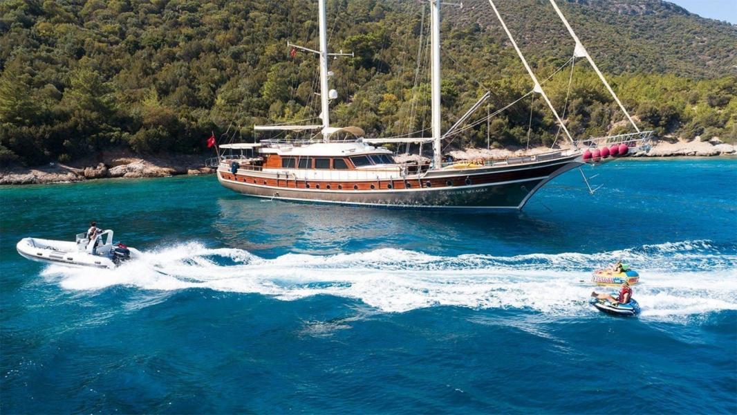Originally built in 2005 for private use and fully refitted in 2010, 2017, and most recently in 2023, the Double Eagle gulet now stands as one of the finest options for a Bodrum gulet charter. Based in Bodrum but available for charter across all cruising regions depending on availability, this 40 meter long and 7.8 meter-wide luxury gulet delivers an unforgettable blue cruise experience.