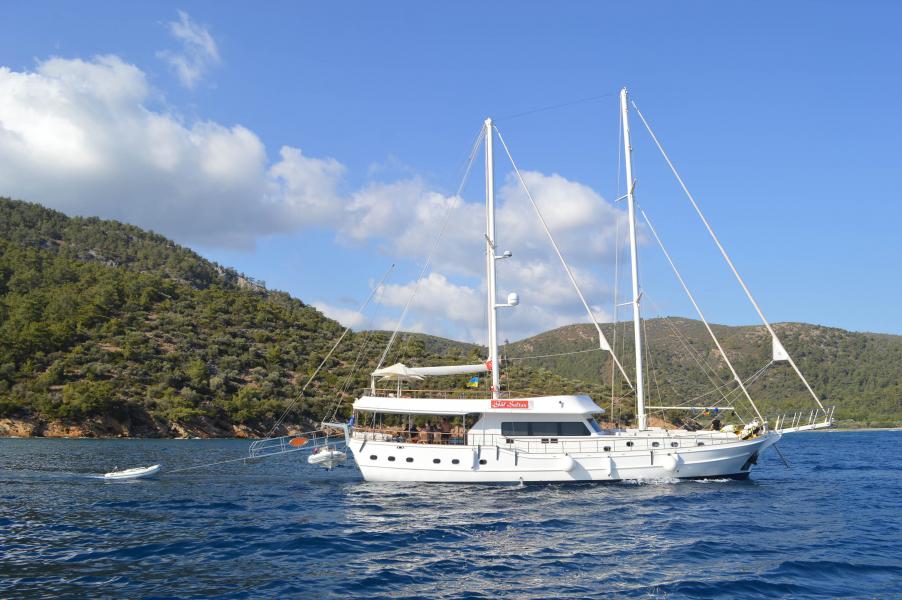 Built in 2016, Gül Sultan is a 30 meter luxury gulet that blends elegant design with traditional craftsmanship, offering an unforgettable blue cruise experience along the Turkish coast.