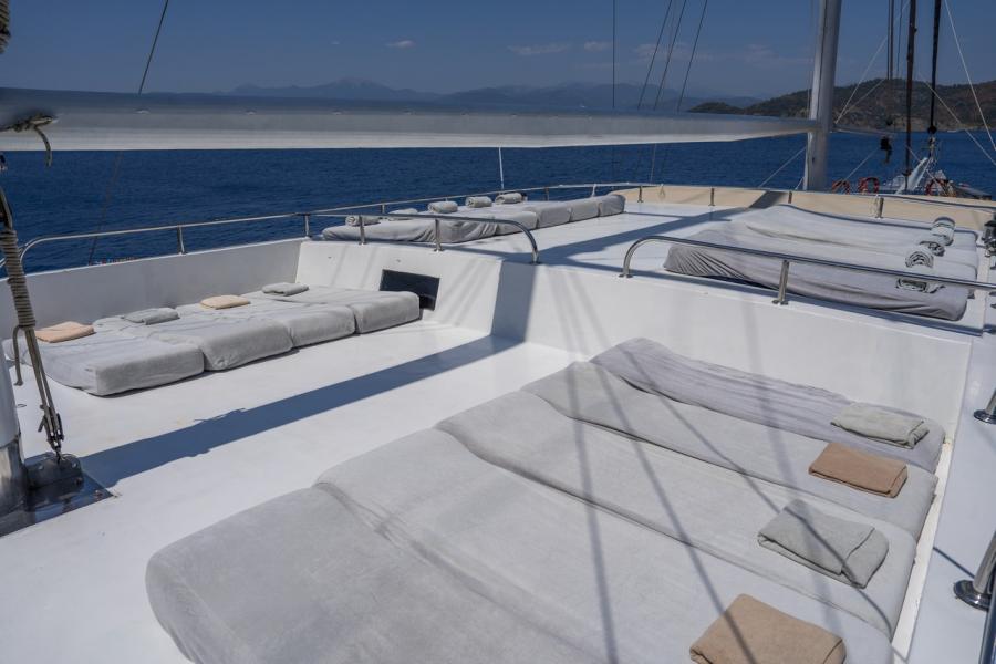Measuring 39 meters in length, Holiday 10 offers expansive deck and cabin spaces, providing the ultimate setting for a luxurious and relaxing journey at sea. With a total of 10 cabins 6 double, 2 triple, and 2 twin this elegant vessel accommodates up to 22 guests in complete comfort. Fully refitted in 2025, the gulet now features a modern interior design that enhances both style and functionality.