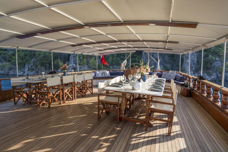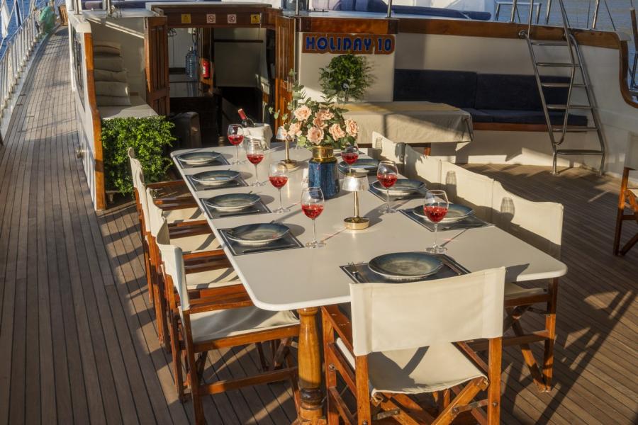 Experience the perfect blend of comfort and elegance aboard Holiday 10, a deluxe gulet charter ideal for large families and groups seeking an unforgettable blue cruise in Turkey.