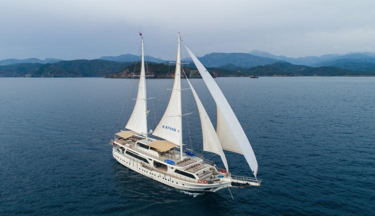 Built in 2002 and fully renovated in 2017, Kayhan 11 is a 34 meter gulet with a 7.5 meter beam, offering a spacious and elegant environment for an unforgettable sailing experience. Modernized cabins, interior furnishings, and decks combine style and functionality, ensuring every detail meets high standards of comfort and luxury. With a cruising speed of 9 knots and a maximum speed of 11 knots, guests can enjoy safe and smooth sailing along the beautiful Turkish coast.