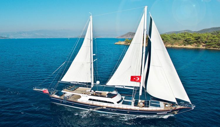 Set sail aboard Maske 2, a 30-meter luxury yacht offering a refined and relaxing Fethiye yacht charter experience along the stunning Turkish coastline.