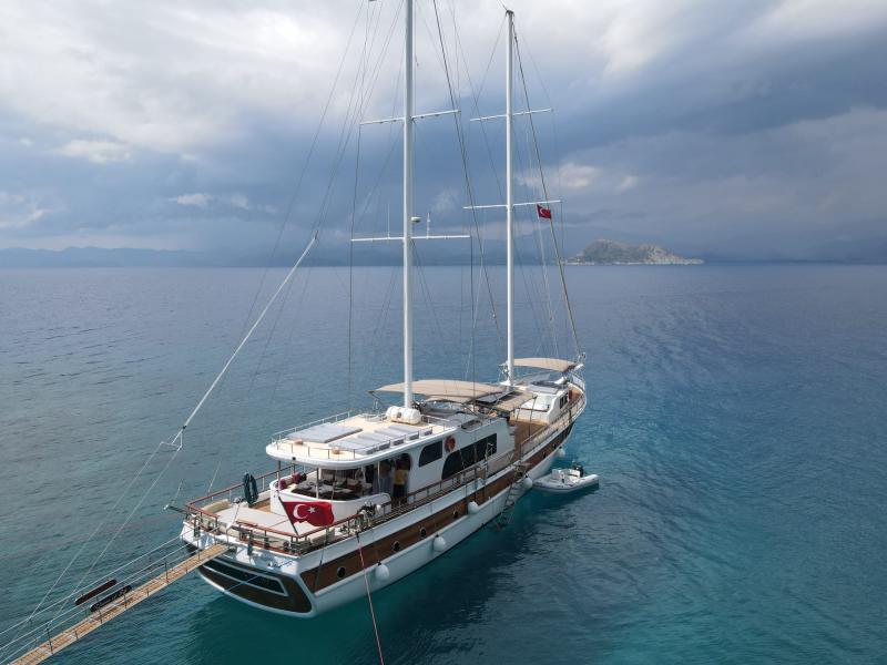 Built in 2009 and extensively refitted in 2022, Queen Of Rtt represents the pinnacle of modern elegance among luxury gulets in Turkey. At 32 meters long and 7.5 meters wide, this stunning vessel offers a perfect retreat for families or groups of up to 16 guests across 8 spacious double cabins. Designed to deliver hotel style comfort on the water, it features open air dining areas, expansive lounges, and a Jacuzzi on deck ideal for those seeking true indulgence at sea. With routes available from Fethiye, Göcek, Marmaris, and Bodrum, Queen Of Rtt combines flexibility with superior service quality that sets it apart from similar yachts in the region. A professional crew of five including a captain, chef, three deckhands, and a hostess ensures an exceptional turkey crewed yacht charter experience, while 24 hour air conditioning provides unmatched comfort. For guests who wish to elevate their turkey sailing yacht charter, optional water toys such as Jet Ski and Seabob rentals promise endless excitement on the waves.