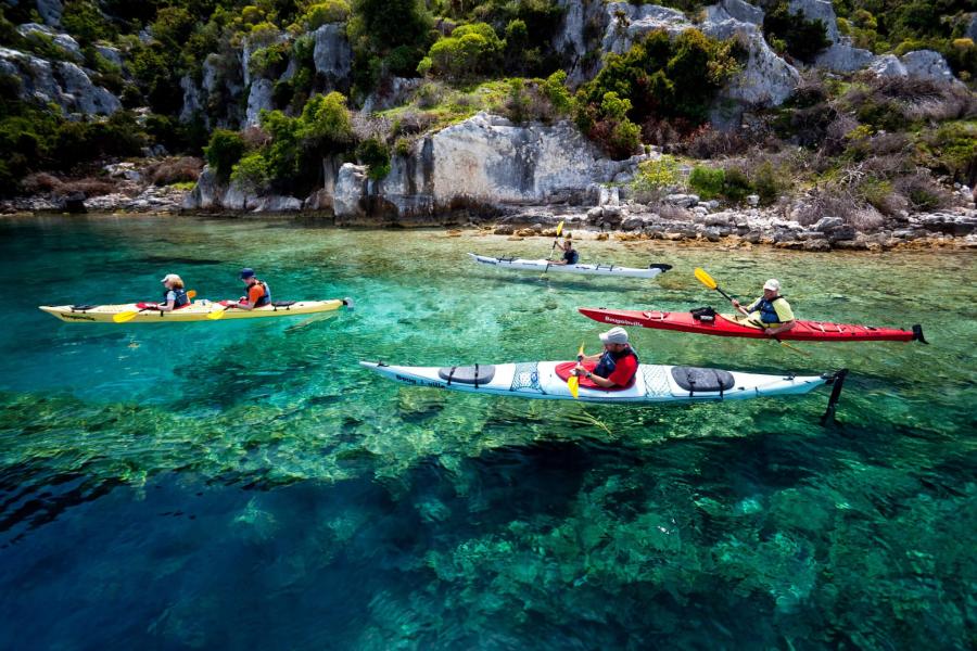After breakfast we sail to Butterfly Valley, a dramatic gorge framed by steep cliffs. You can swim ashore or follow a 45 minute trail to a small waterfall. We’ll stop for lunch at Ölüdeniz’s iconic Blue Lagoon, a spot that’s among the most photographed on the Med. If you’re seeking a thrill, we can arrange a tandem paraglide from Mount Babadağ. In the afternoon we head for St Nicholas Island, where you can enjoy water sports, sample fresh gözleme, hike up to ancient Lycian ruins and watch the sun set from the top of the island.