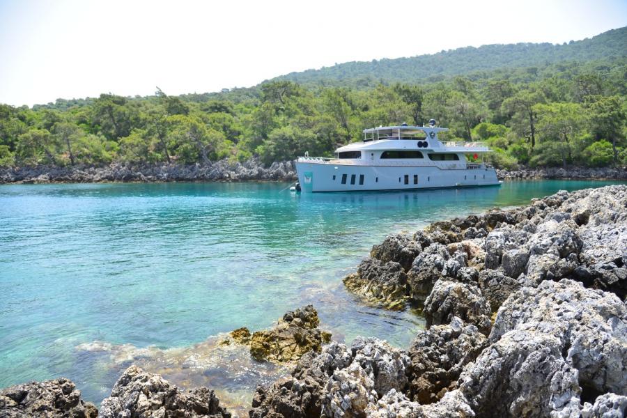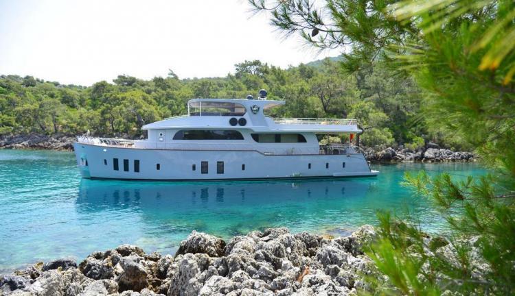 Enjoy a truly refined cruising experience aboard Simay F, a 26 meter deluxe trawler offering the ultimate Turkey trawler charter experience with elegant design and exceptional comfort.