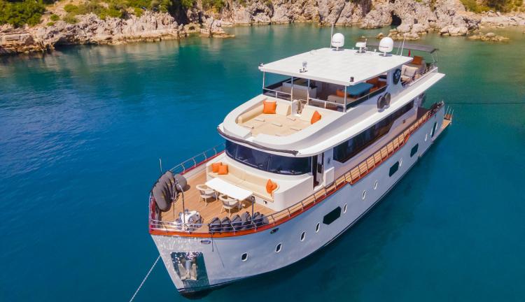 Experience elegance and comfort aboard Simay M, a deluxe rental trawler designed to deliver an exceptional blue cruise experience across the Aegean and Mediterranean seas.